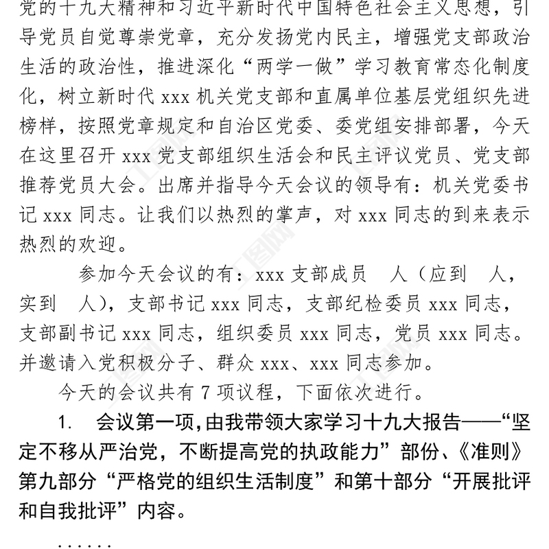 工圖網(wǎng)提供xxx黨支部年終組織生活會暨民主評議黨員大會主持詞供會員免費(fèi)下載。更多精彩黨課PPT素材,盡在工圖網(wǎng)。