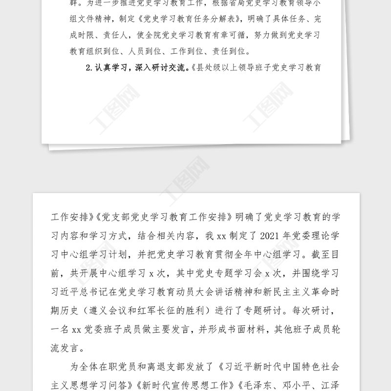 工圖網(wǎng)提供黨史總結(jié)黨史學(xué)習(xí)教育推進(jìn)情況匯報(bào)范文工作總結(jié)匯報(bào)報(bào)告供會(huì)員免費(fèi)下載。更多精彩黨課PPT素材,盡在工圖網(wǎng)。