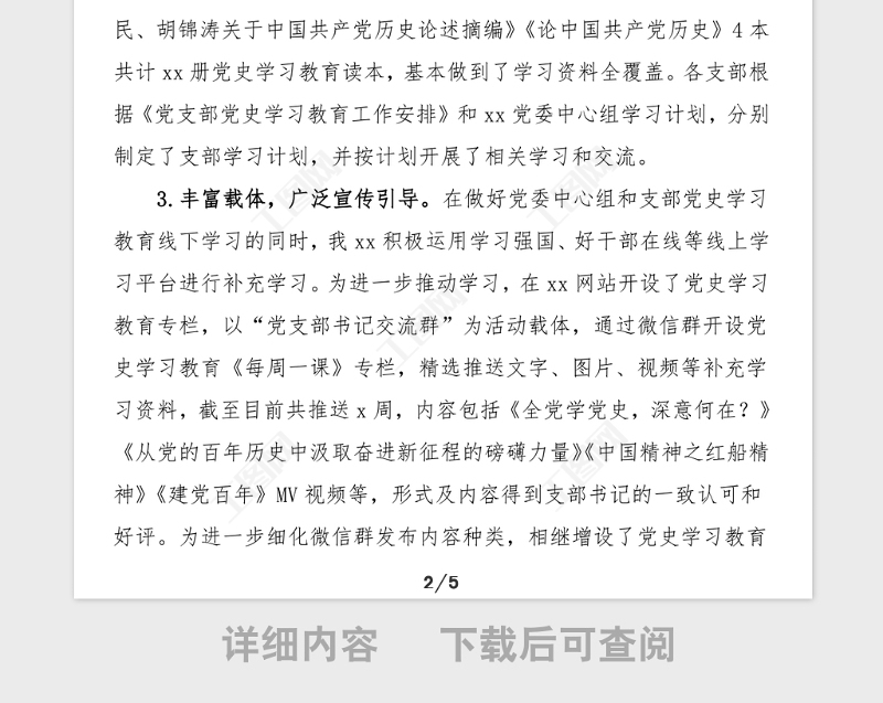 2021學(xué)習(xí)黨史學(xué)習(xí)教育民主生活會(huì)方案2021關(guān)于申請(qǐng)黨費(fèi)購(gòu)買黨史學(xué)習(xí)教育資料的支部會(huì)議記錄2021農(nóng)村支部學(xué)習(xí)黨史學(xué)習(xí)教育講話稿2021黨史學(xué)習(xí)教育動(dòng)員大會(huì)學(xué)習(xí)教育筆記2021社區(qū)組織學(xué)習(xí)建黨100年情況匯報(bào)2021學(xué)校黨支部書(shū)記總結(jié)黨史學(xué)習(xí)教育2022團(tuán)支部工作總結(jié)黨史學(xué)習(xí)教育開(kāi)展情況2023教育整頓干部交流情況匯報(bào)2023新時(shí)代中國(guó)特色社會(huì)主義思想教育開(kāi)展情況匯報(bào)2023干部教育整頓情況匯報(bào)發(fā)言2023干部教育整頓情況匯報(bào)材料2023交通強(qiáng)國(guó)建設(shè)推進(jìn)情況匯報(bào)2023干部教育整頓情況匯報(bào)會(huì)2023新時(shí)代中國(guó)特色社會(huì)主義思想教育活動(dòng)情況匯報(bào)