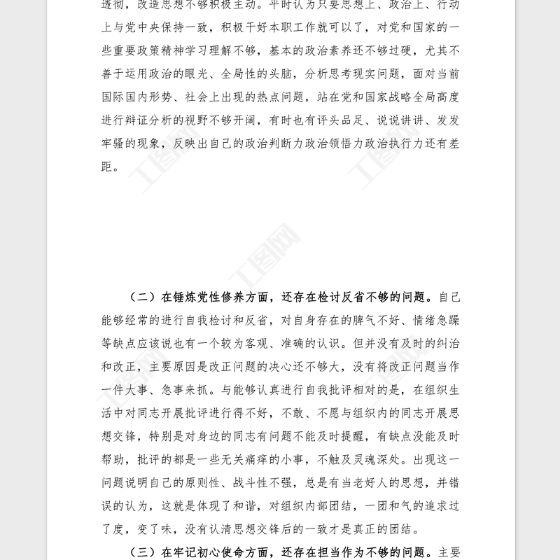 工圖網(wǎng)提供2021黨史學(xué)習(xí)生活會個人對照檢查供會員免費下載。更多精彩黨課PPT素材,盡在工圖網(wǎng)。