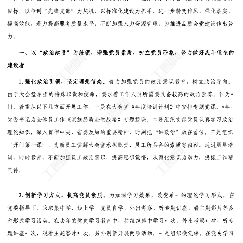 工圖網(wǎng)提供強(qiáng)化作風(fēng) 匯聚合力 努力建設(shè)堅(jiān)強(qiáng)堡壘 助推大會(huì)堂服務(wù)發(fā)展新高度-黨支部爭創(chuàng)先鋒黨支部匯報(bào)材料供會(huì)員免費(fèi)下載。更多精彩黨課PPT素材,盡在工圖網(wǎng)。