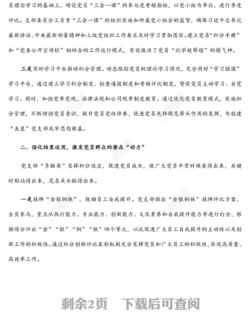 > 經(jīng)驗(yàn)事跡 > 公司黨建工作經(jīng)驗(yàn)交流會(huì)發(fā)言材料:實(shí)施量化考核 推行積分管理 打造“五星黨支部”新“硬核”.DOCX 【圖片、文字、動(dòng)畫(huà)均可編輯】