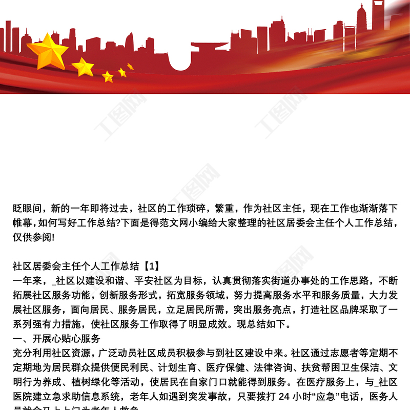工圖網(wǎng)提供社區(qū)居委會主任個人工作總結(jié)3篇供會員免費下載。更多精彩黨課PPT素材,盡在工圖網(wǎng)。