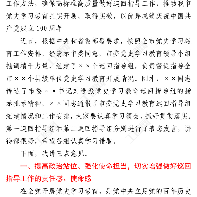 工圖網(wǎng)提供2021在黨史學(xué)習(xí)教育巡回指導(dǎo)工作培訓(xùn)會議上的講話供會員免費下載。更多精彩黨課PPT素材,盡在工圖網(wǎng)。