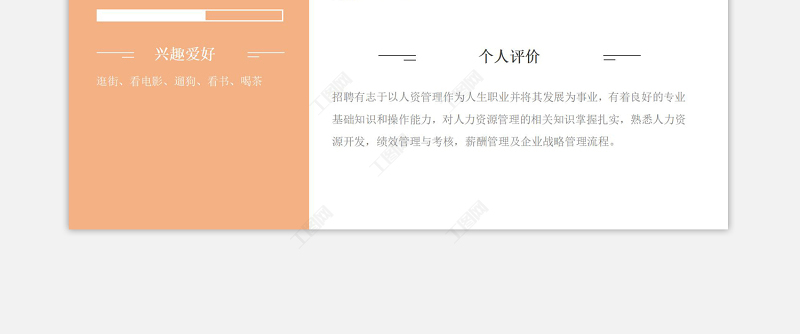 柔和暖色兩欄式人力資源主管應(yīng)聘求職個(gè)人簡歷模板下載