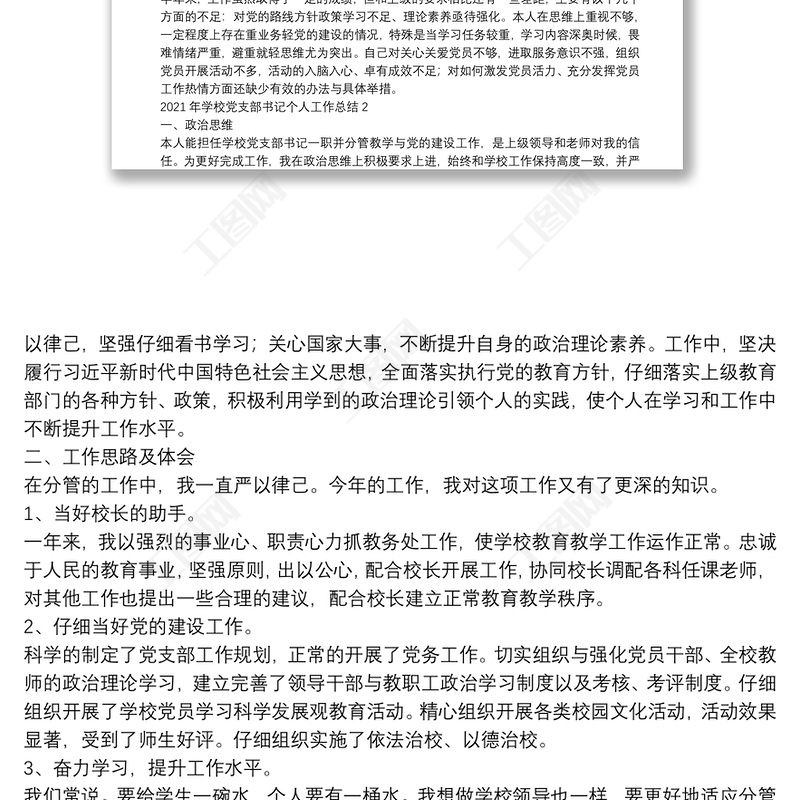 工圖網(wǎng)提供學(xué)校黨支部書記2021年個人工作總結(jié)2篇供會員免費(fèi)下載。更多精彩黨課PPT素材,盡在工圖網(wǎng)。