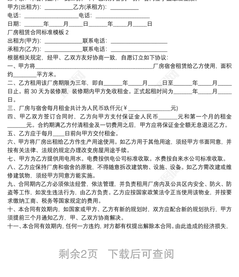 廠(chǎng)房租賃合同標(biāo)準(zhǔn)模板 Array