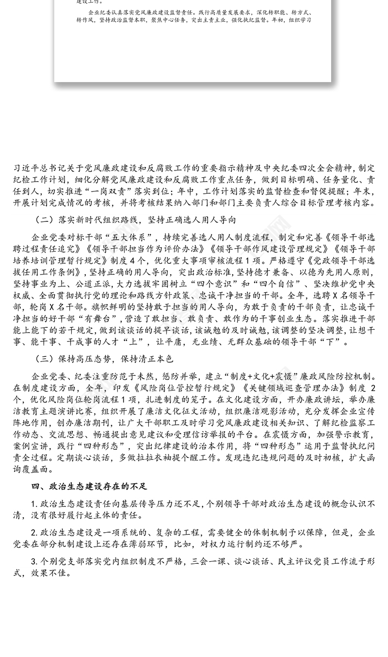 2021年某國有企業(yè)政治生態(tài)分析報告