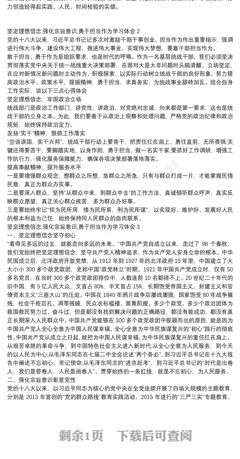 工圖網(wǎng)提供堅定理想信念,強化宗旨意識,勇于擔當作為學習體會三篇供會員免費下載。更多精彩黨課PPT素材,盡在工圖網(wǎng)。