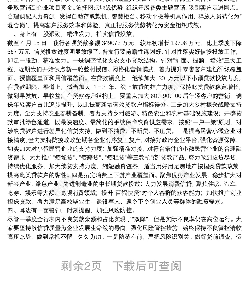 在某銀行2022年一季度經(jīng)營(yíng)形勢(shì)分析會(huì)上的講話