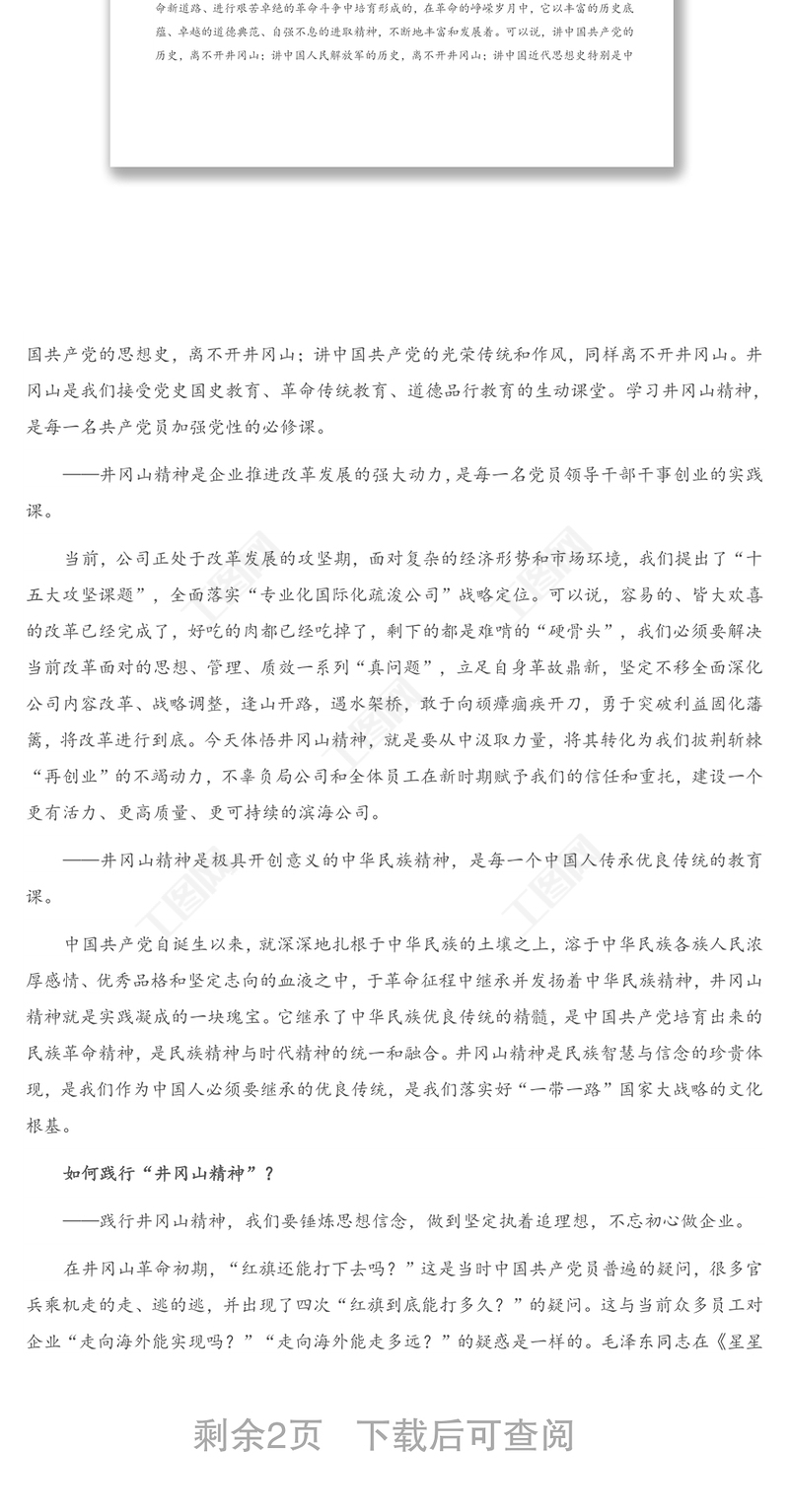 工圖網(wǎng)提供2021年X公司黨委書記在井岡山紅色教育活動(dòng)開班儀式上的講話供會(huì)員免費(fèi)下載。更多精彩黨課PPT素材,盡在工圖網(wǎng)。