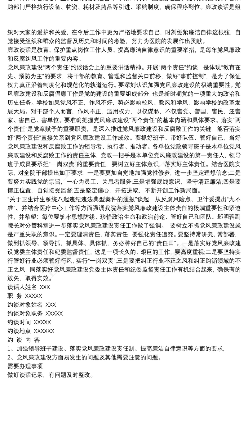 廉政談心談話 廉政談話 廉政談話記錄三篇包含
