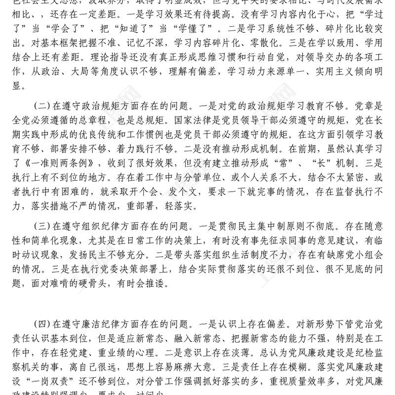 “防風(fēng)險(xiǎn)、守底線(xiàn)”專(zhuān)題民主生活會(huì)組織生活會(huì)個(gè)對(duì)照檢查剖析材料包含