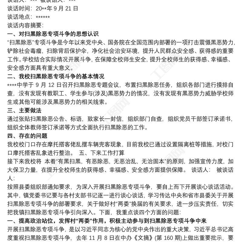 工圖網(wǎng)提供黨員干部掃黑除惡專項(xiàng)斗爭(zhēng)談心談話記錄黨員干部談心談話記錄三篇供會(huì)員免費(fèi)下載。更多精彩黨課PPT素材,盡在工圖網(wǎng)。
