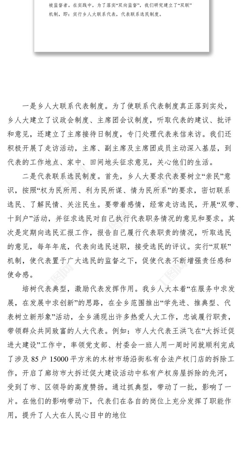 2021鄉(xiāng)鎮(zhèn)發(fā)揮人大代表作用的經(jīng)驗交流材料