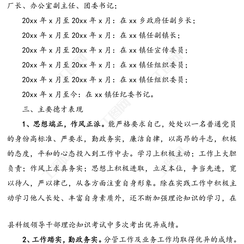 首頁 > WORD文檔 > 公文范文 > xx同志現(xiàn)實(shí)表現(xiàn)材料(鄉(xiāng)鎮(zhèn)紀(jì)委書記).DOCX 【圖片、文字、動(dòng)畫均可編輯】