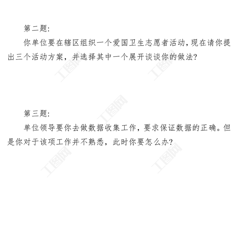 工圖網(wǎng)提供2024年2月3日湖南省湘潭市岳塘區(qū)事業(yè)單位面試題(回憶版)供會(huì)員免費(fèi)下載。更多精彩黨課PPT素材,盡在工圖網(wǎng)。