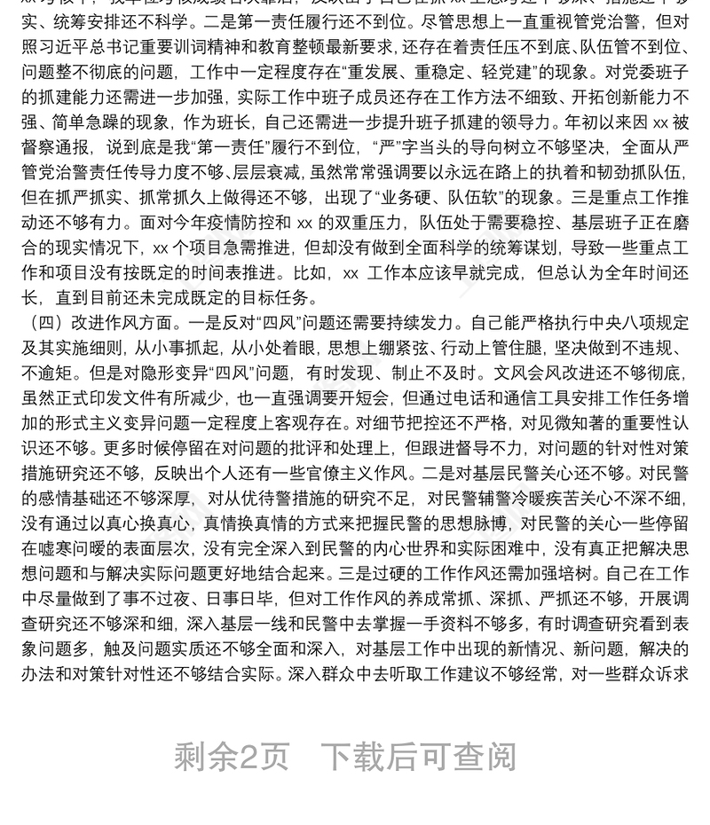 > 對(duì)照檢查 > “堅(jiān)持政治建警全面從嚴(yán)治警”教育整頓專題民主生活會(huì)黨委書記個(gè)人對(duì)照檢查材料.DOCX 【圖片、文字、動(dòng)畫均可編輯】