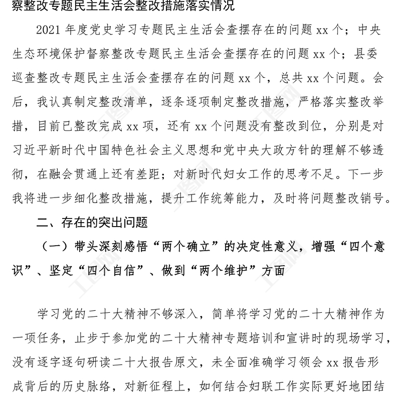 工圖網(wǎng)提供2023年民主生活會(huì)“六個(gè)帶頭”個(gè)人對(duì)照檢查材料(縣婦聯(lián)主席)供會(huì)員免費(fèi)下載。更多精彩黨課PPT素材,盡在工圖網(wǎng)。