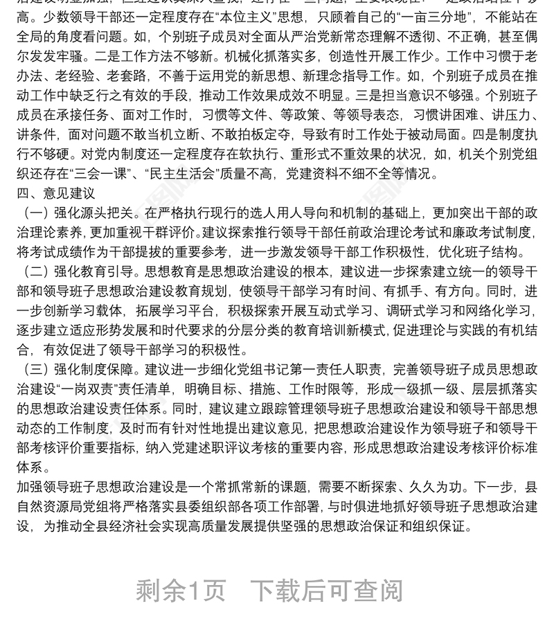 X縣自然資源局2021年領(lǐng)導(dǎo)班子思想政治建設(shè)情況匯報(bào) Array