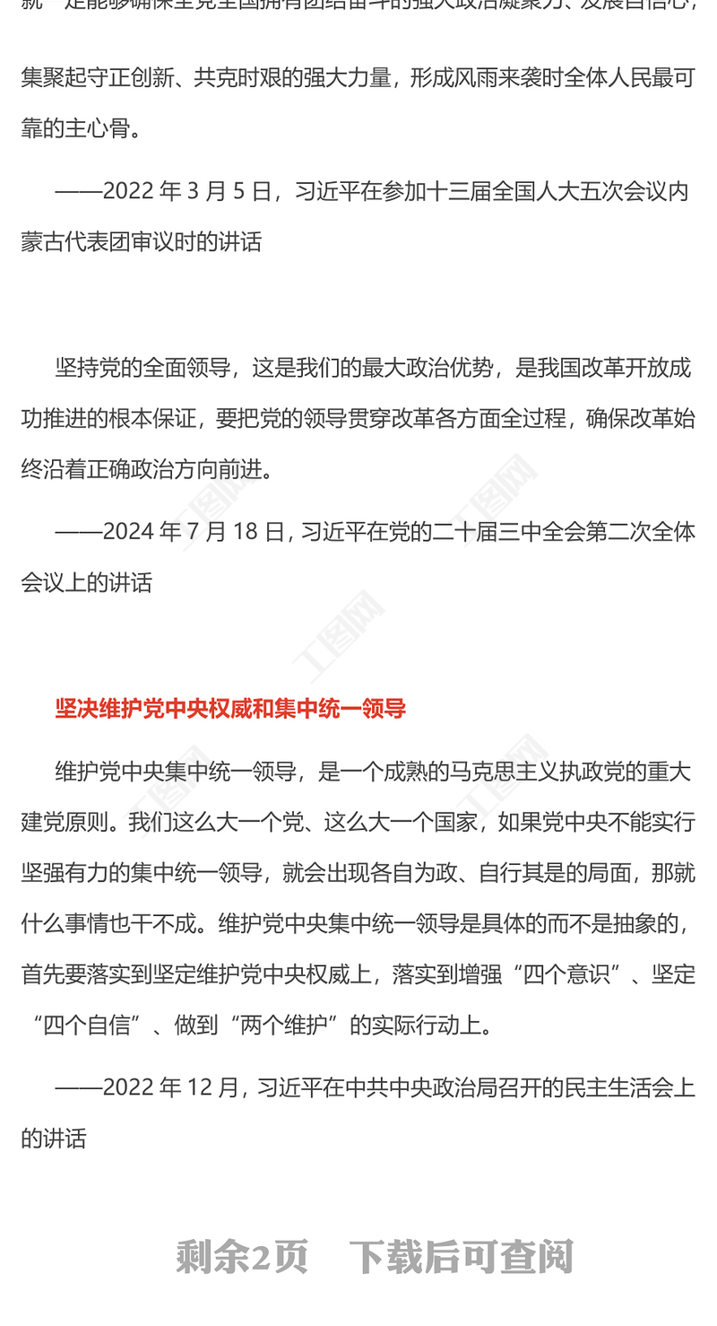 工圖網(wǎng)提供黨建風(fēng)堅持和加強(qiáng)黨的全面領(lǐng)導(dǎo)PPT總書記重要論述課件(講稿)供會員免費下載。更多精彩黨課PPT素材,盡在工圖網(wǎng)。