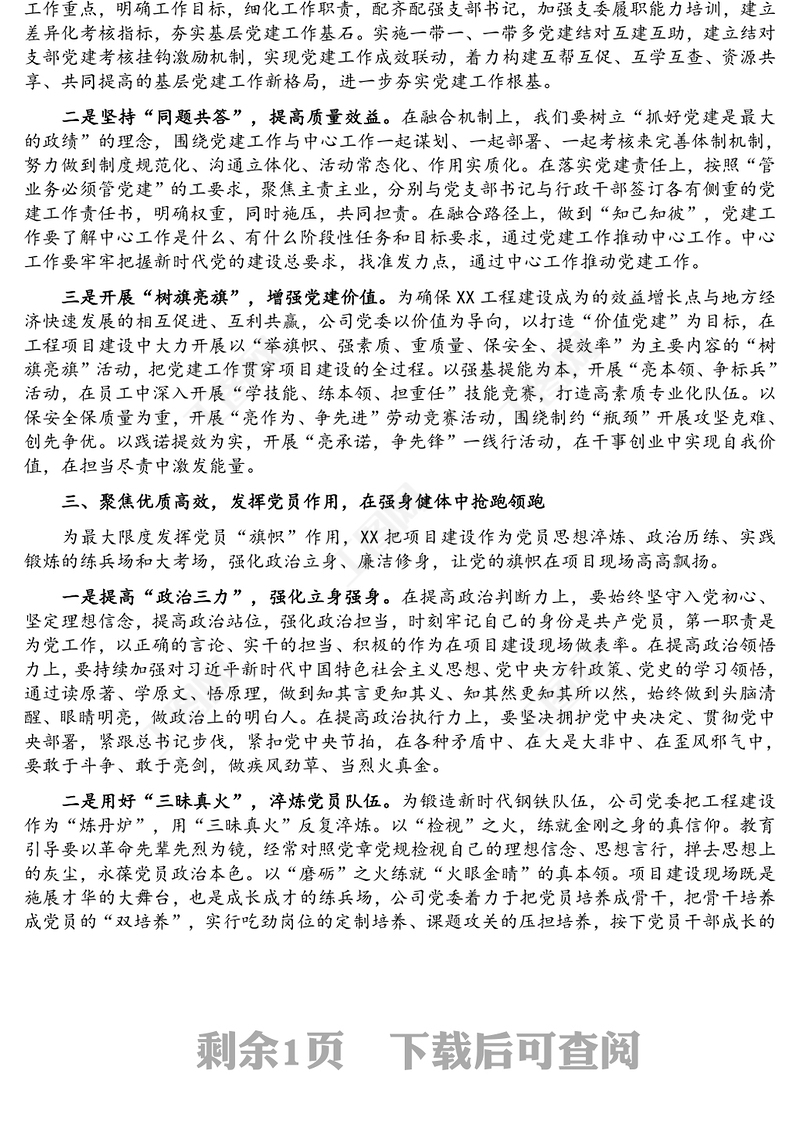 工圖網提供強化黨建引領 聚力高質量發(fā)展——國有企業(yè)經驗交流材料供會員免費下載。更多精彩黨課PPT素材,盡在工圖網。