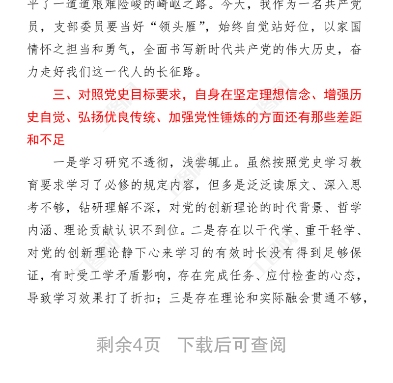 黨支部委員黨史學(xué)習(xí)教育專題組織生活會個人對照檢查材料(1)包含