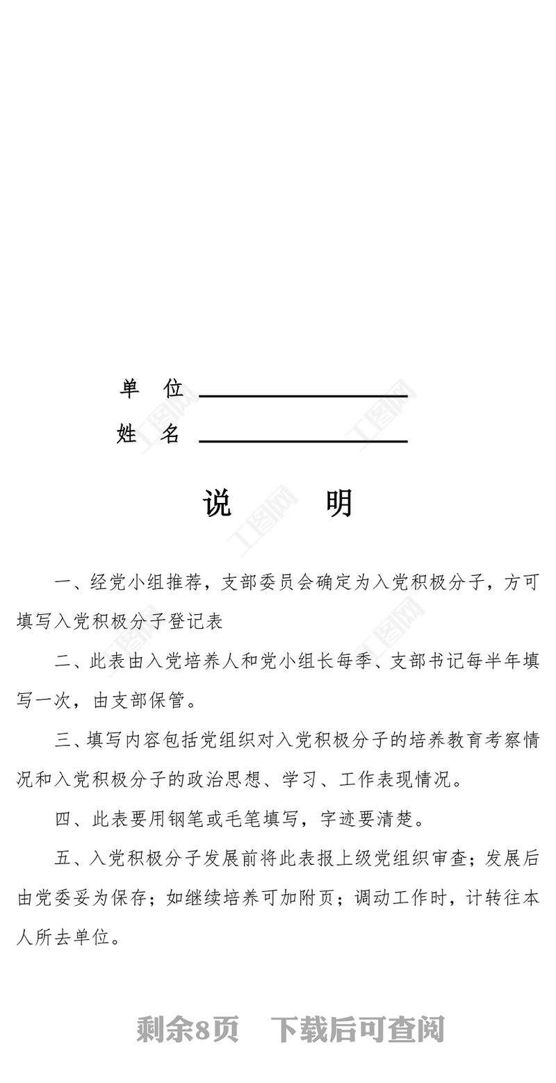 工圖網提供入黨積極分子登記表(空白)供會員免費下載。更多精彩黨課PPT素材,盡在工圖網。