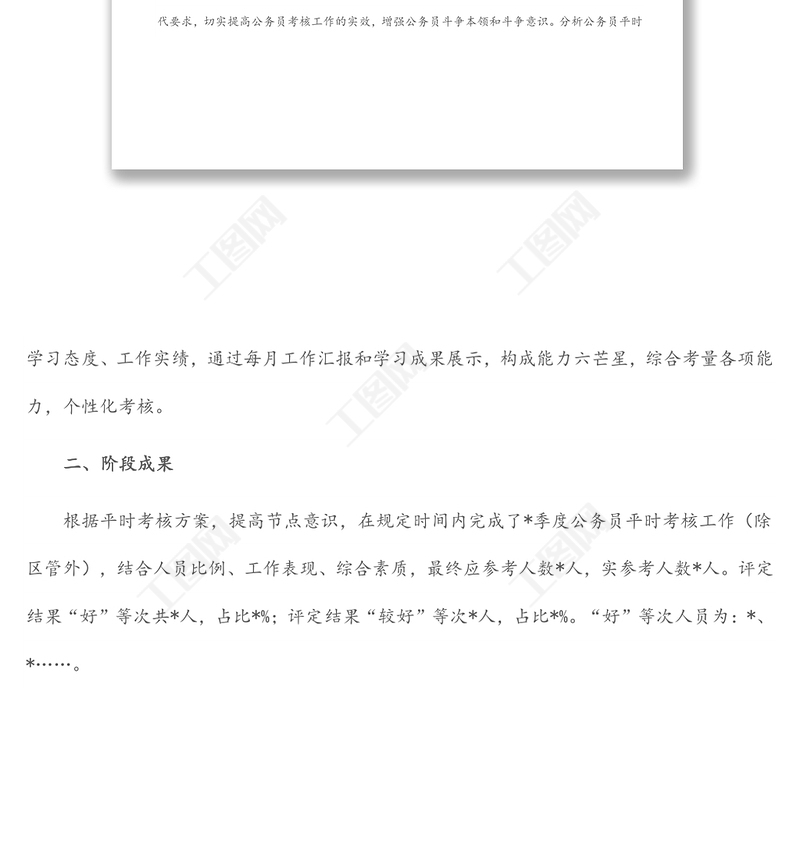 工圖網(wǎng)提供公務(wù)員平時(shí)考核工作季度小結(jié)供會(huì)員免費(fèi)下載。更多精彩黨課PPT素材,盡在工圖網(wǎng)。