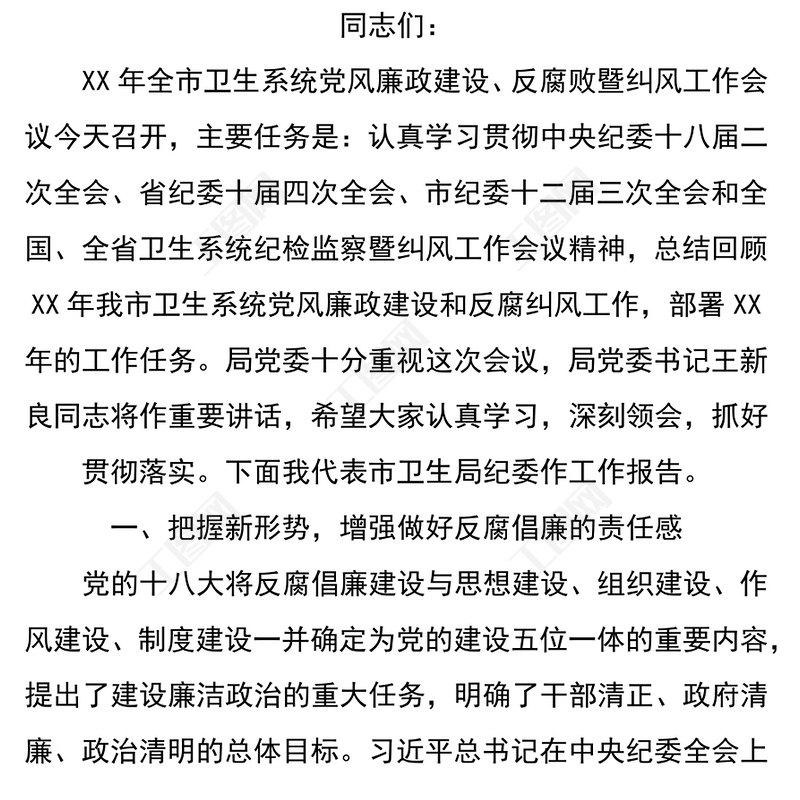 工圖網(wǎng)提供XX年全市衛(wèi)生系統(tǒng)黨風(fēng)廉政建設(shè)反腐敗暨糾風(fēng)工作會議上的工作報告供會員免費下載。更多精彩黨課PPT素材,盡在工圖網(wǎng)。
