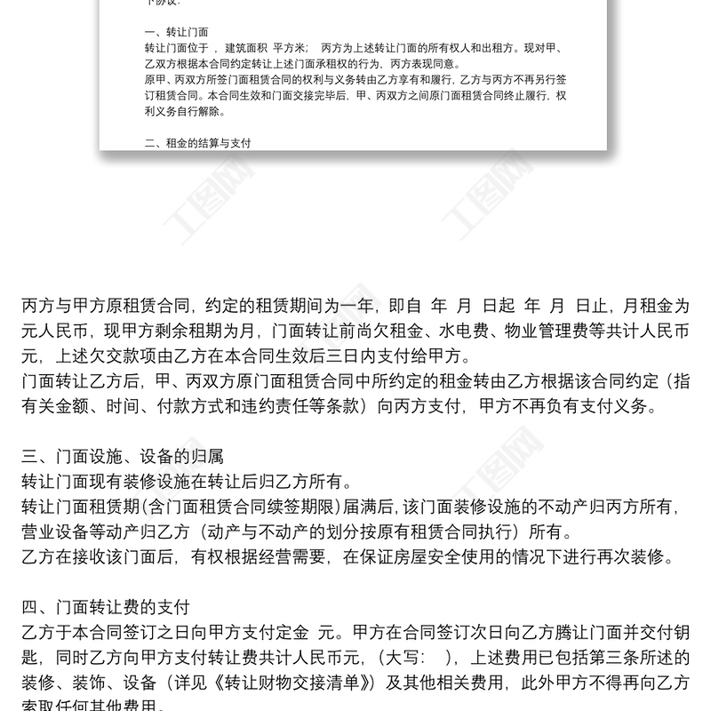 工圖網(wǎng)提供店鋪轉(zhuǎn)讓協(xié)議書(shū)范本五篇供會(huì)員免費(fèi)下載。更多精彩黨課PPT素材,盡在工圖網(wǎng)。