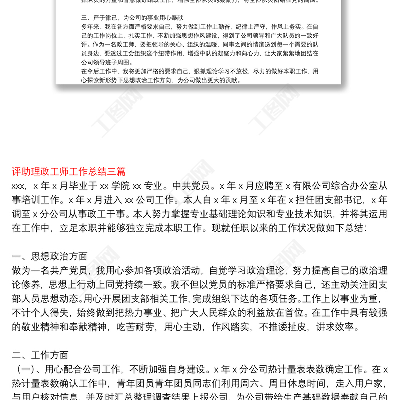 工圖網(wǎng)提供評助理政工師工作總結(jié)三篇供會員免費下載。更多精彩黨課PPT素材,盡在工圖網(wǎng)。