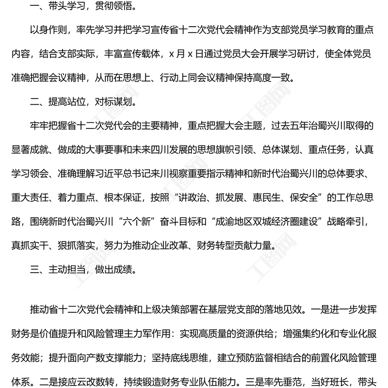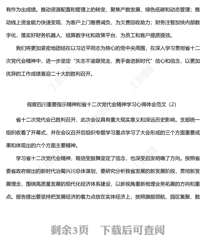 工圖網(wǎng)提供視察四川指示精神和省十二次黨代會精神學(xué)習(xí)心得體會范文3篇供會員免費下載。更多精彩黨課PPT素材,盡在工圖網(wǎng)。