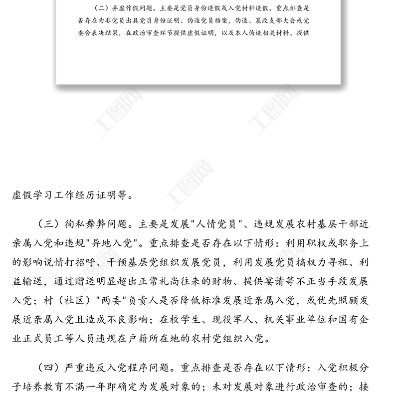 工圖網(wǎng)提供2021年排查整頓農(nóng)村發(fā)展黨員違規(guī)違紀(jì)問(wèn)題工作實(shí)施方案(鎮(zhèn)鄉(xiāng)、街道)供會(huì)員免費(fèi)下載。更多精彩黨課PPT素材,盡在工圖網(wǎng)。