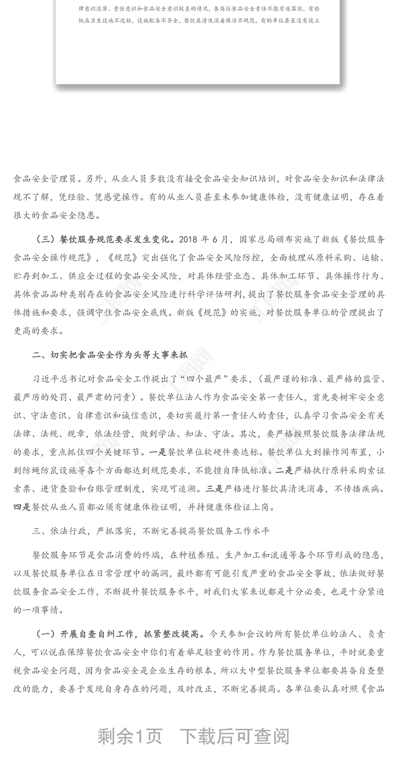 在全市大中型餐飲服務(wù)食品安全工作培訓(xùn)會上的講話