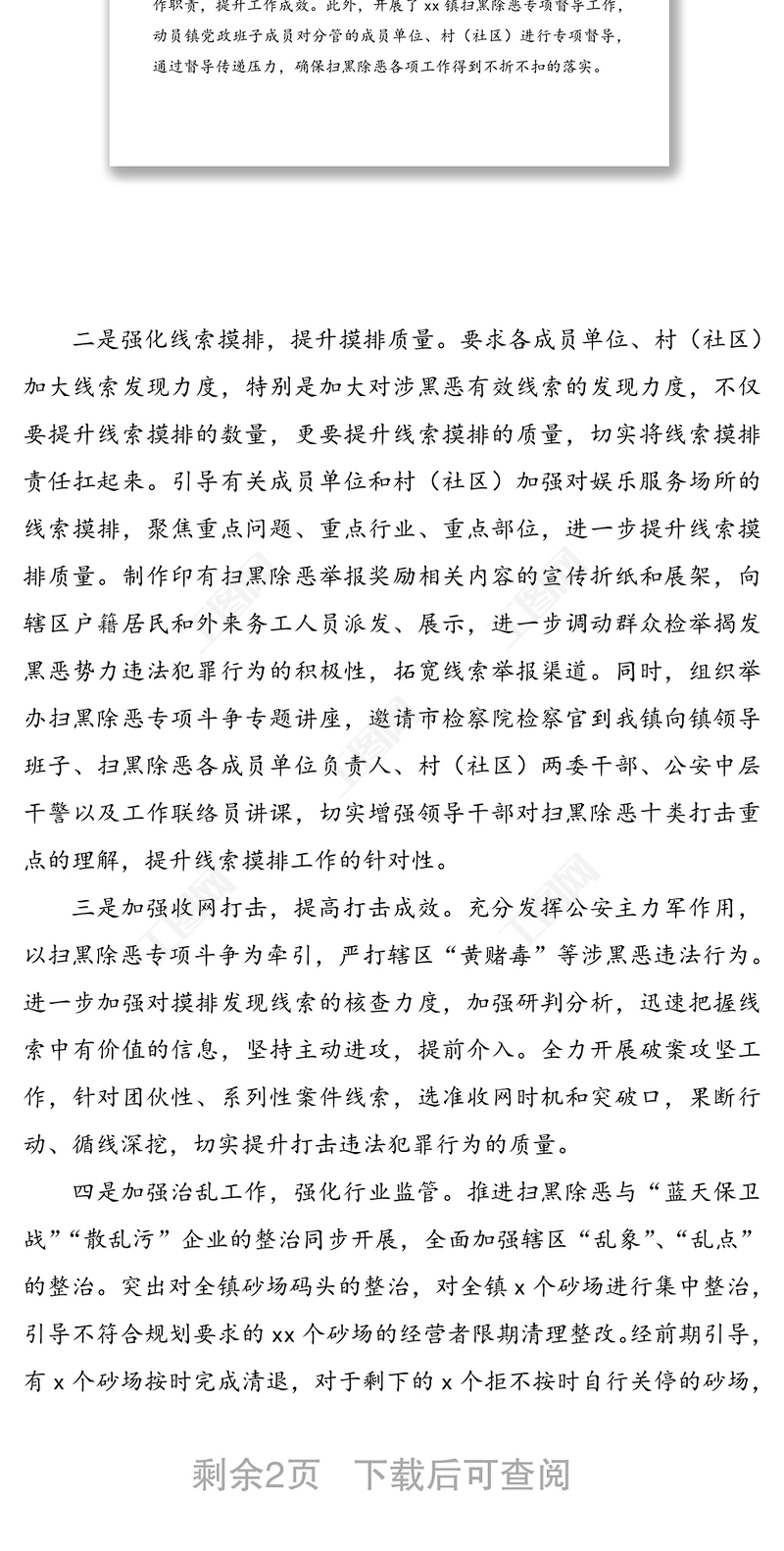 鄉(xiāng)鎮(zhèn)掃黑除惡線索摸排工作情況匯報村委會掃黑除惡工作總結(jié)包含