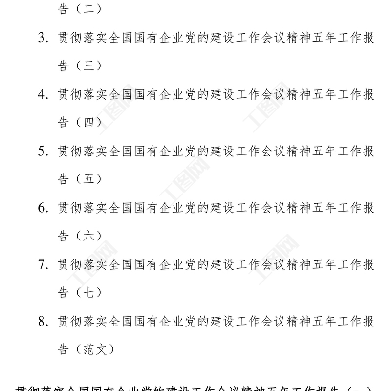 工圖網(wǎng)提供(8篇)貫徹落實國有企業(yè)黨的建設(shè)工作會議精神五年工作報告匯編供會員免費下載。更多精彩黨課PPT素材,盡在工圖網(wǎng)。