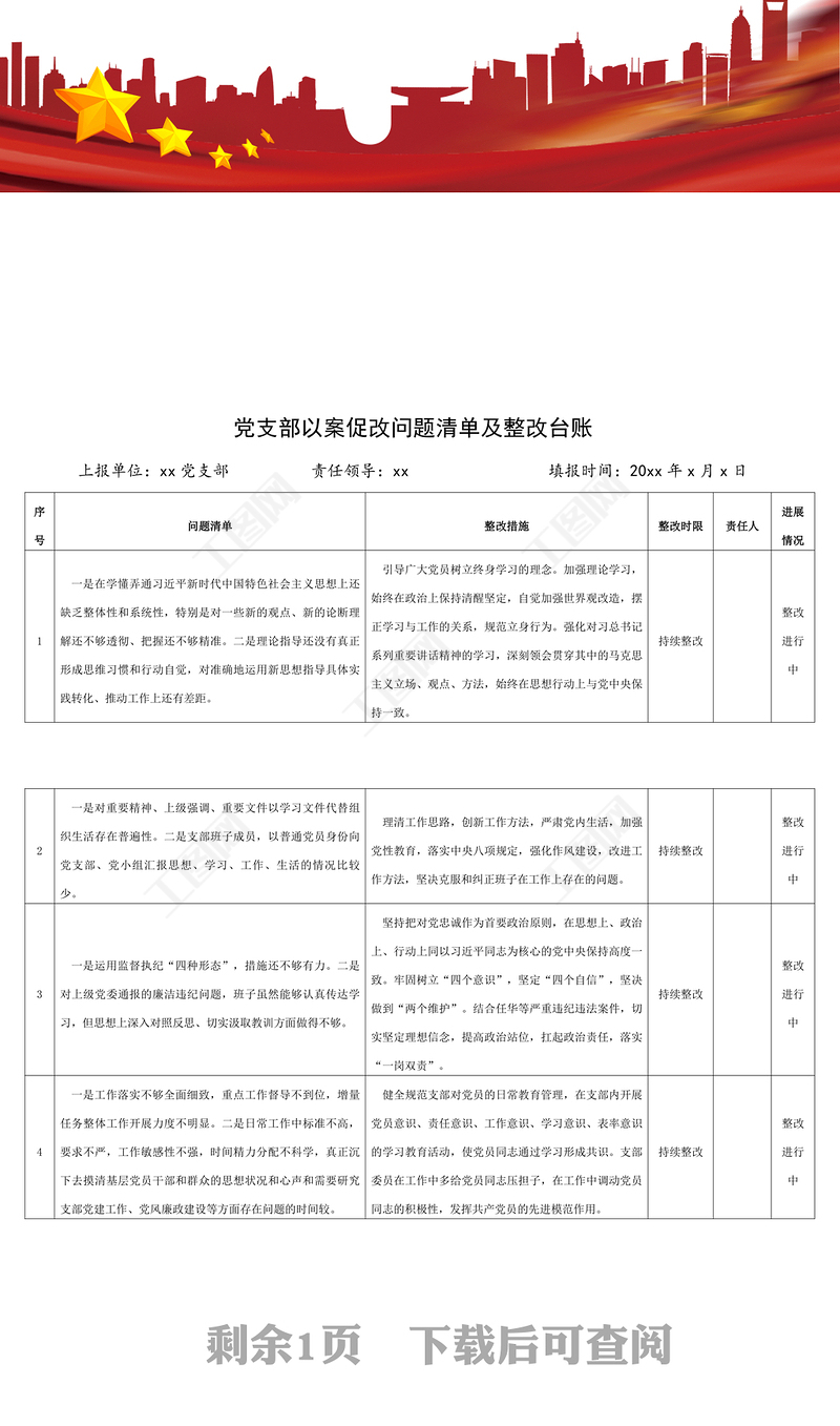 黨支部以案促改問(wèn)題清單整改措施臺(tái)賬表格 Array
