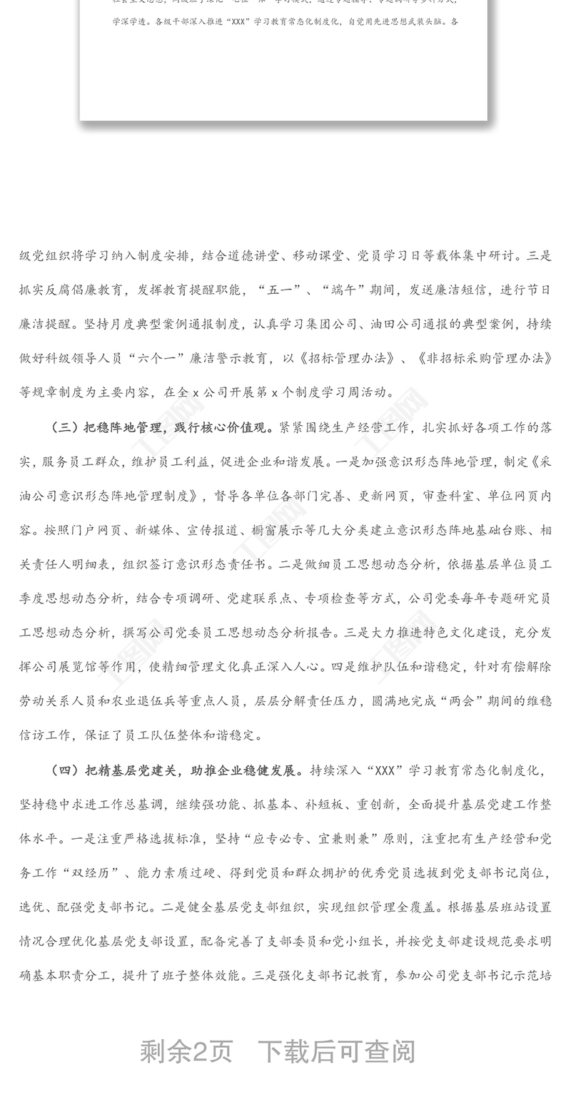 工圖網(wǎng)提供石油公司意識(shí)形態(tài)工作總結(jié)和下步工作計(jì)劃供會(huì)員免費(fèi)下載。更多精彩黨課PPT素材,盡在工圖網(wǎng)。