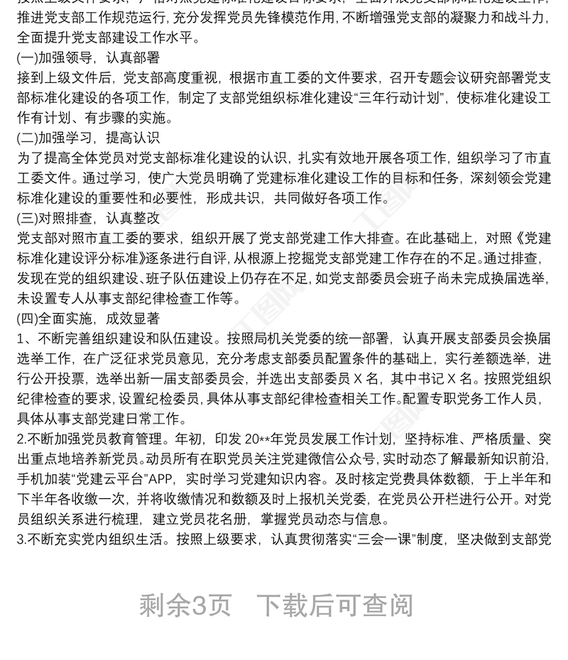 工圖網(wǎng)提供黨支部標(biāo)準(zhǔn)化建設(shè)達(dá)標(biāo)工作自評(píng)報(bào)告三篇供會(huì)員免費(fèi)下載。更多精彩黨課PPT素材,盡在工圖網(wǎng)。
