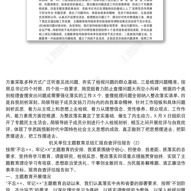 工圖網(wǎng)提供機(jī)關(guān)單位主題教育總結(jié)匯報(bào)自查評(píng)估報(bào)告3篇供會(huì)員免費(fèi)下載。更多精彩黨課PPT素材,盡在工圖網(wǎng)。