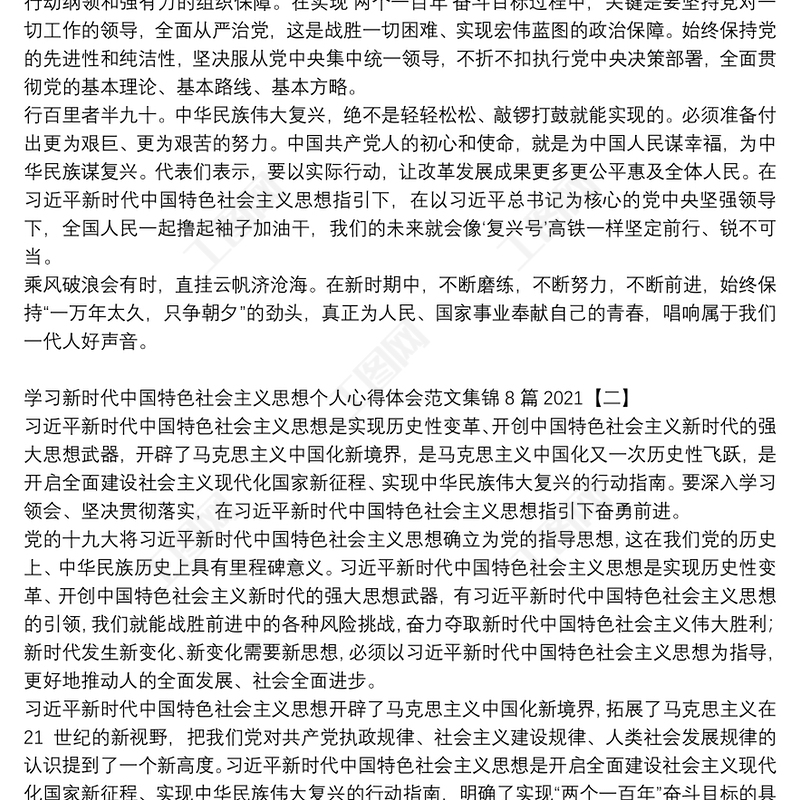 工圖網(wǎng)提供學(xué)習(xí)新時代中國特色社會主義思想個人心得體會范文集錦8篇2021供會員免費下載。更多精彩黨課PPT素材,盡在工圖網(wǎng)。