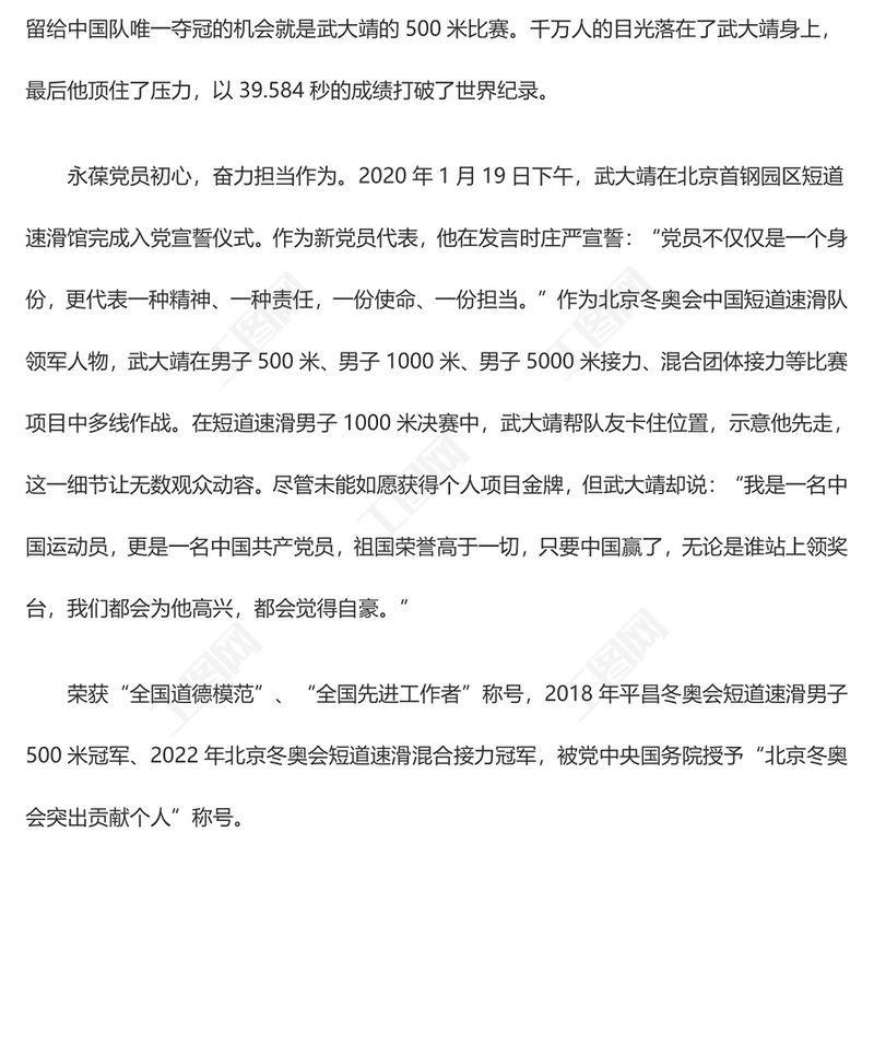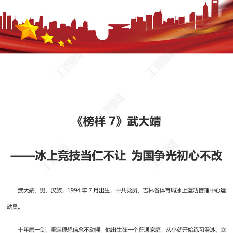 工圖網(wǎng)提供《榜樣7》武大靖:冰上競技當仁不讓 為國爭光初心不改供會員免費下載。更多精彩黨課PPT素材,盡在工圖網(wǎng)。