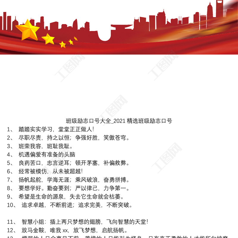 工圖網(wǎng)提供班級勵志口號大全_2021精選班級勵志口號供會員免費下載。更多精彩黨課PPT素材,盡在工圖網(wǎng)。