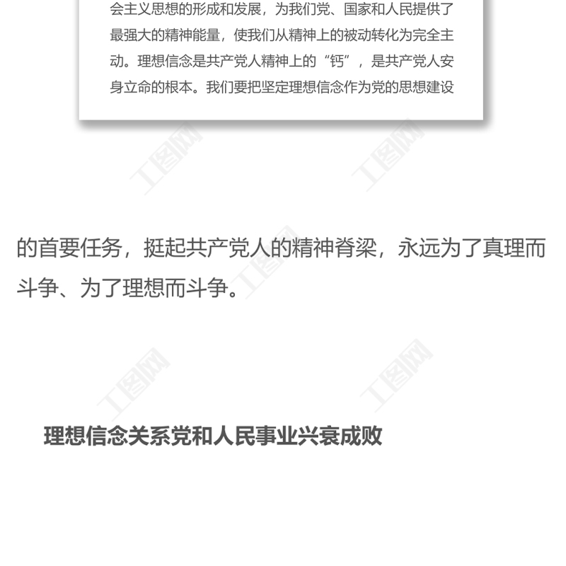 工圖網(wǎng)提供挺起共產(chǎn)黨人的精神脊梁把堅(jiān)定理想信念作為黨的思想建設(shè)的首要任務(wù)供會(huì)員免費(fèi)下載。更多精彩黨課PPT素材,盡在工圖網(wǎng)。