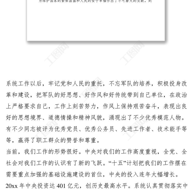 工圖網提供2021部隊轉業(yè)復員退伍軍人座談會講話供會員免費下載。更多精彩黨課PPT素材,盡在工圖網。