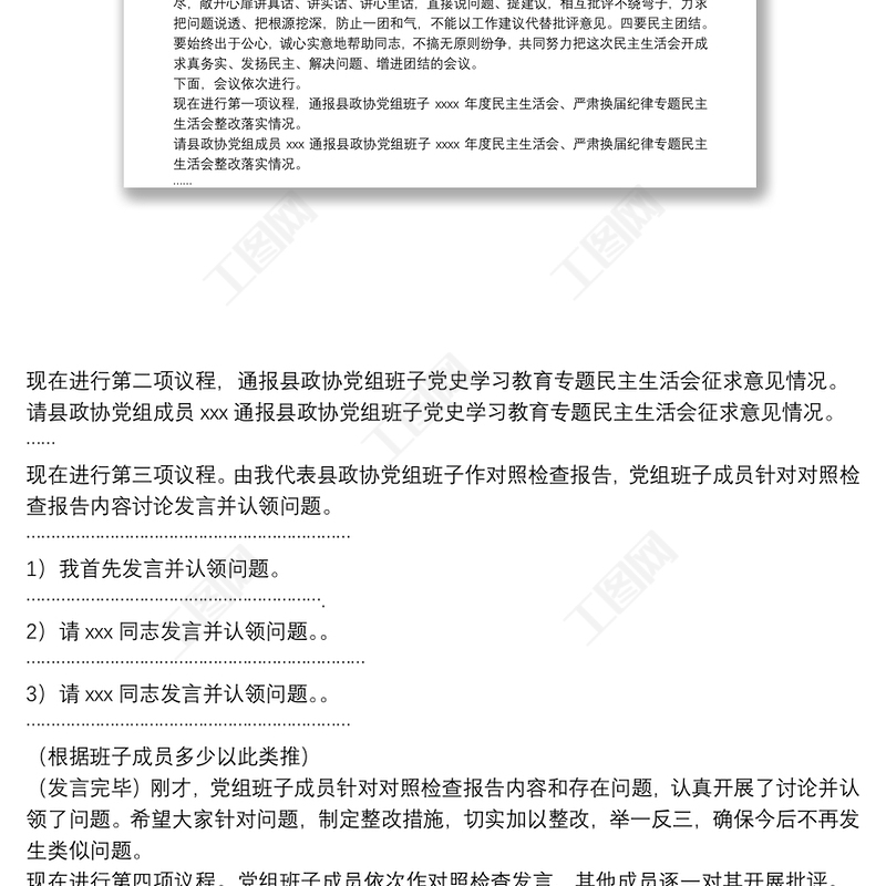 工圖網(wǎng)提供縣政協(xié)黨組黨史學(xué)習(xí)教育專題民主生活會(huì)主持詞供會(huì)員免費(fèi)下載。更多精彩黨課PPT素材,盡在工圖網(wǎng)。
