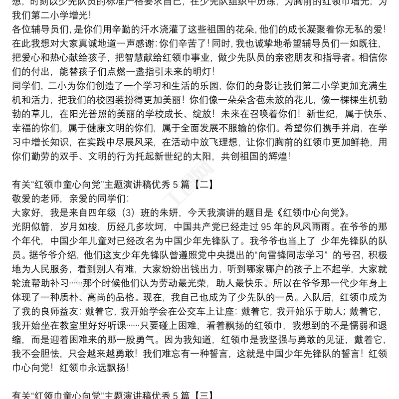 有關“紅領巾童心向黨”主題演講稿優(yōu)秀5篇