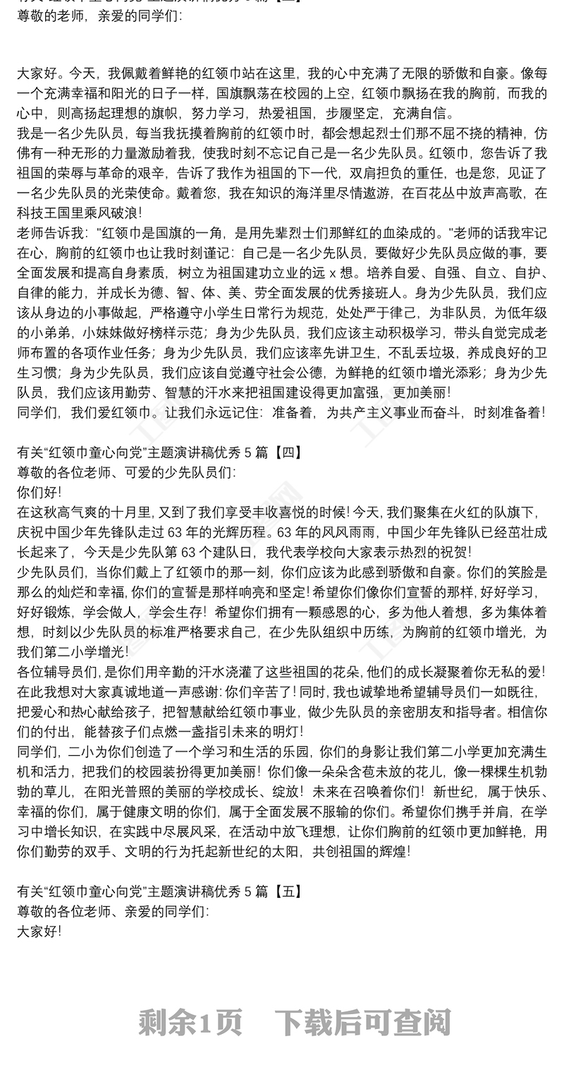 有關“紅領巾童心向黨”主題演講稿優(yōu)秀5篇 Array