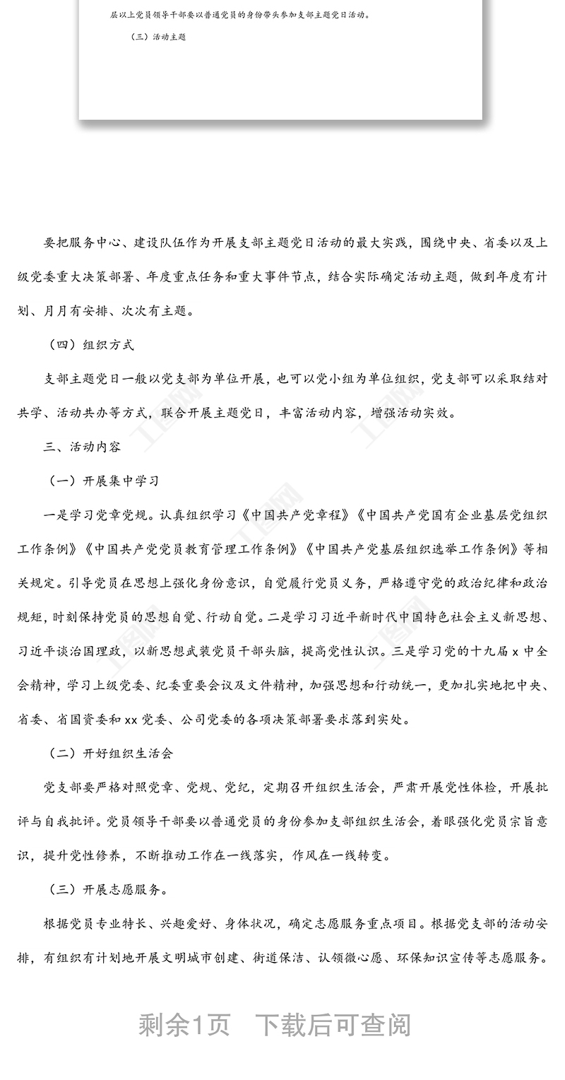 黨支部2022年主題黨日活動(dòng)計(jì)劃